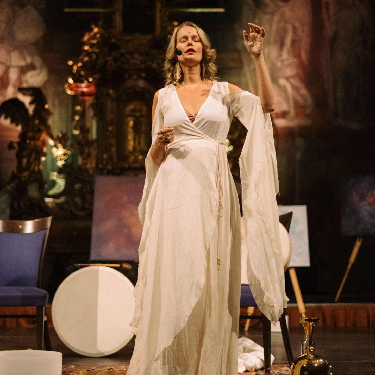 - Advanced techniques of singing with various instruments such as handpan, djembe, koshis and the art of combining the voice with these instruments.